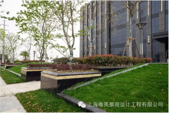 “少就是多”,唯美景观的设计师处理此处景观,手法简洁;那些黑白灰的铺装、几何形的地形与水池也是必不可少的。由于“海绵城市”理念的贯彻,所有的水景用水来自处理过的收集雨水。在地库上,有极大的雨水收集沉淀池。此处商办建筑及其景观是江阴市甲级标准写字楼的新地标,力图建智创空间,争绿色建筑,打造成为“盈智城”。想想里面办公的office先生小姐们会是怎样呢?有诗为证:“宗之潇洒美少年,举觞白眼望青天,皎如玉树临风前。”
