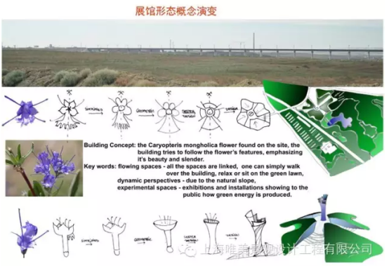 唯美景观的设计师们从凤凰涅槃的传说中找到灵感——宁东凤凰,浴火重生。将生态劣势转化为能源技术优势。利用热电厂的中水,规划成一个凤凰图案的湖泊。并以此为中心,形成各个主题区,使之具有休闲、展示、科研、度假、旅游功能的,具有智能化、科技化、生态化的清洁能源综合示范基地。围绕太阳能源谷的开发利用主题组织新能源基地的活动,打造清洁能源(太阳能、风能)太阳能生态示范区,加上体现高技派与利用循环材料设计的服务建筑,使公园具有正生态效应与示范效应。